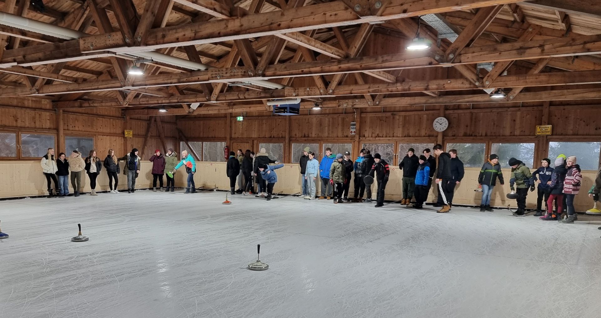Unsere Mittelschüler haben in dieser Woche den Sportunterricht in die Eishalle Freyung verlegt. Richtig viel Spaß hatten alle beim Eisstockschießen.