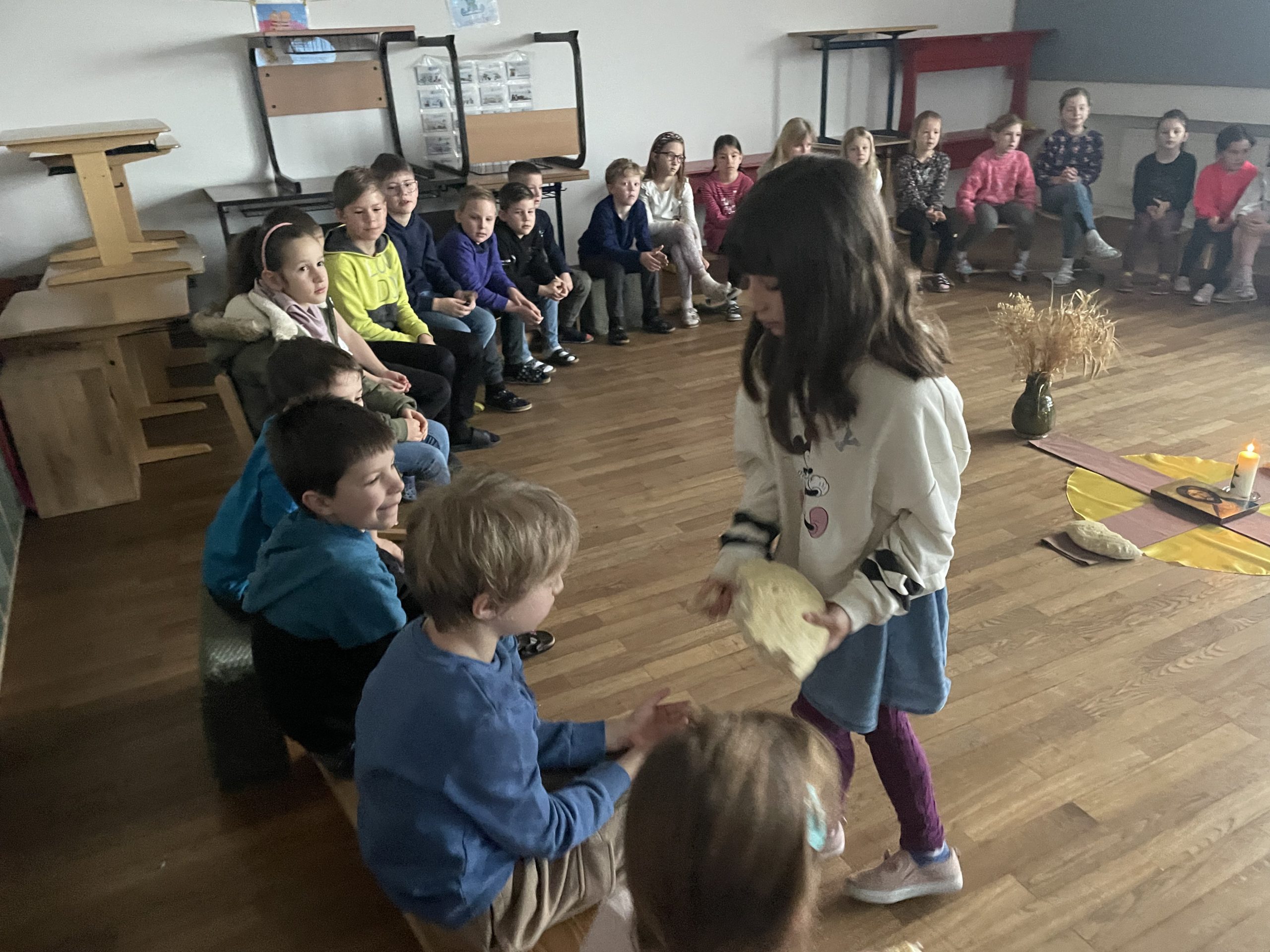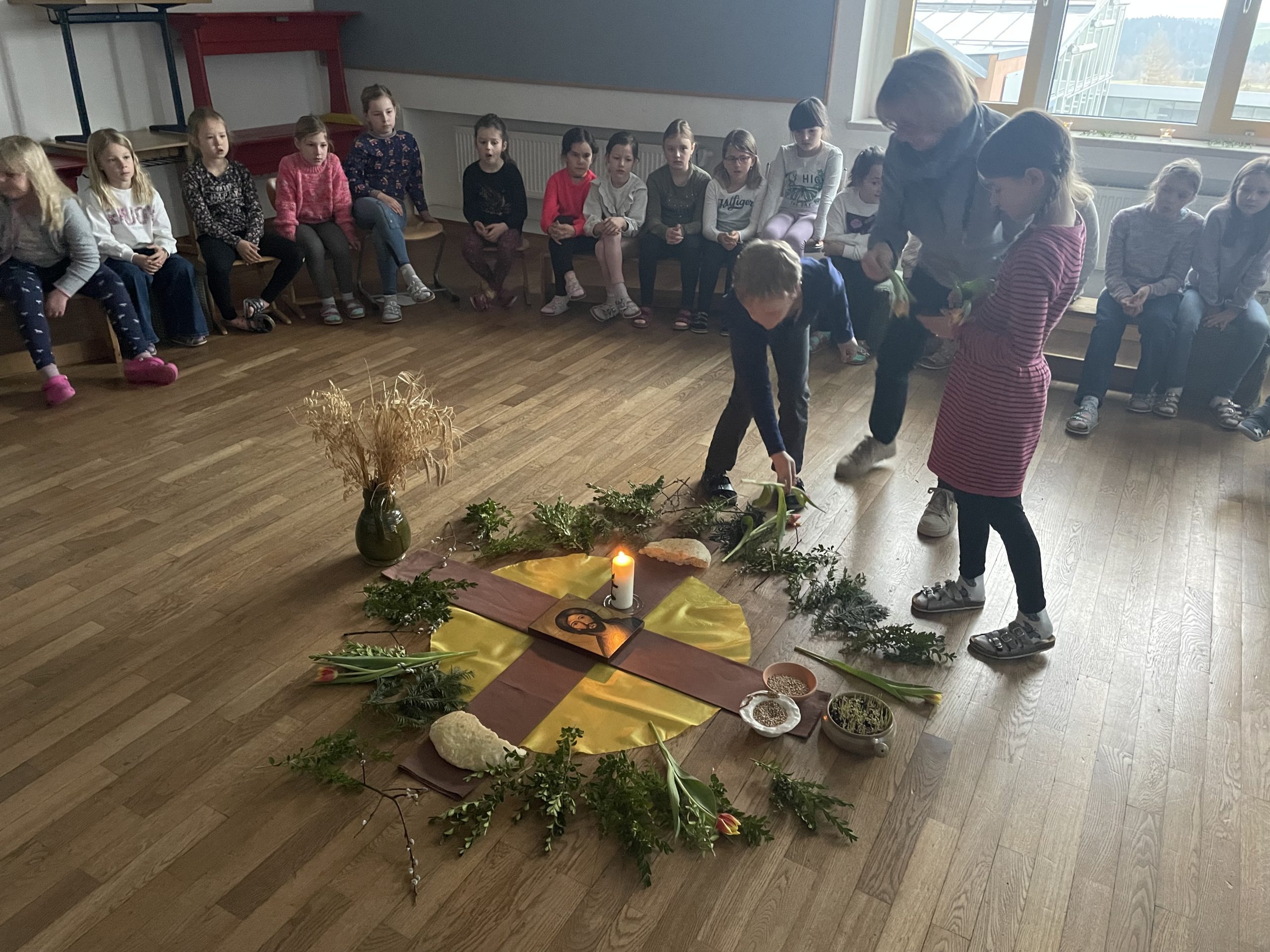 Zu einer „Atempause“ in der Fastenzeit kamen ca. 80 Schülerinnen in der Grund- und Mittelschule Perlesreut frühmorgens zusammen. Das Beispiel vom Weizenkorn stand im Mittelpunkt des Wortgottesdienstes, den Sieglinde Schöffmann und weitere Religionslehrerinnen vorbereitet und mit den Schülern gestaltet hatten.