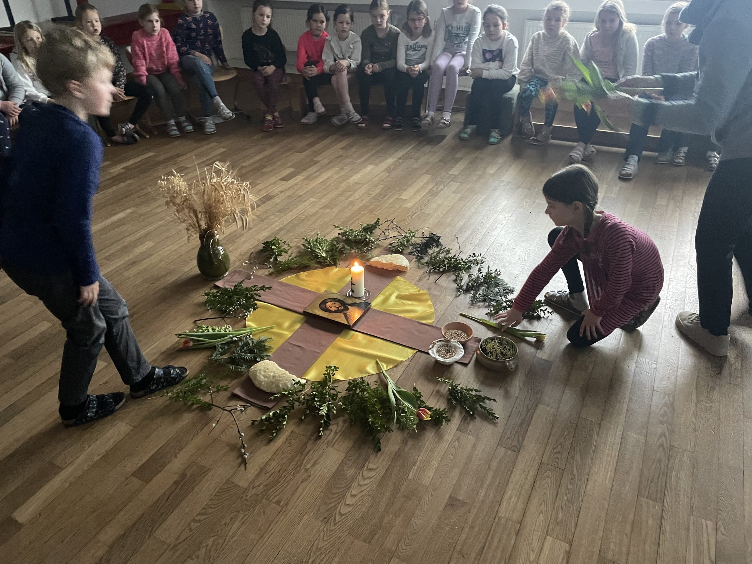 Als Zeichen dafür wurde das Kreuz von den Kindern und Jugendlichen festlich und farbenfroh geschmückt.