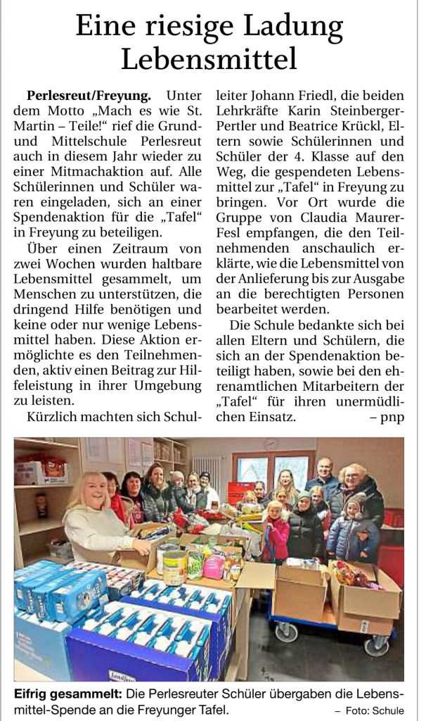 Auch heuer sammelten Schüler und Schülerinnen der vierten Klassen wieder fleißig Lebensmittel für die Tafel und auch der Erlös, den die vielen fleißigen Hände bei einem Muffinverkauf erwirtschafteten, ging an die Tafel.