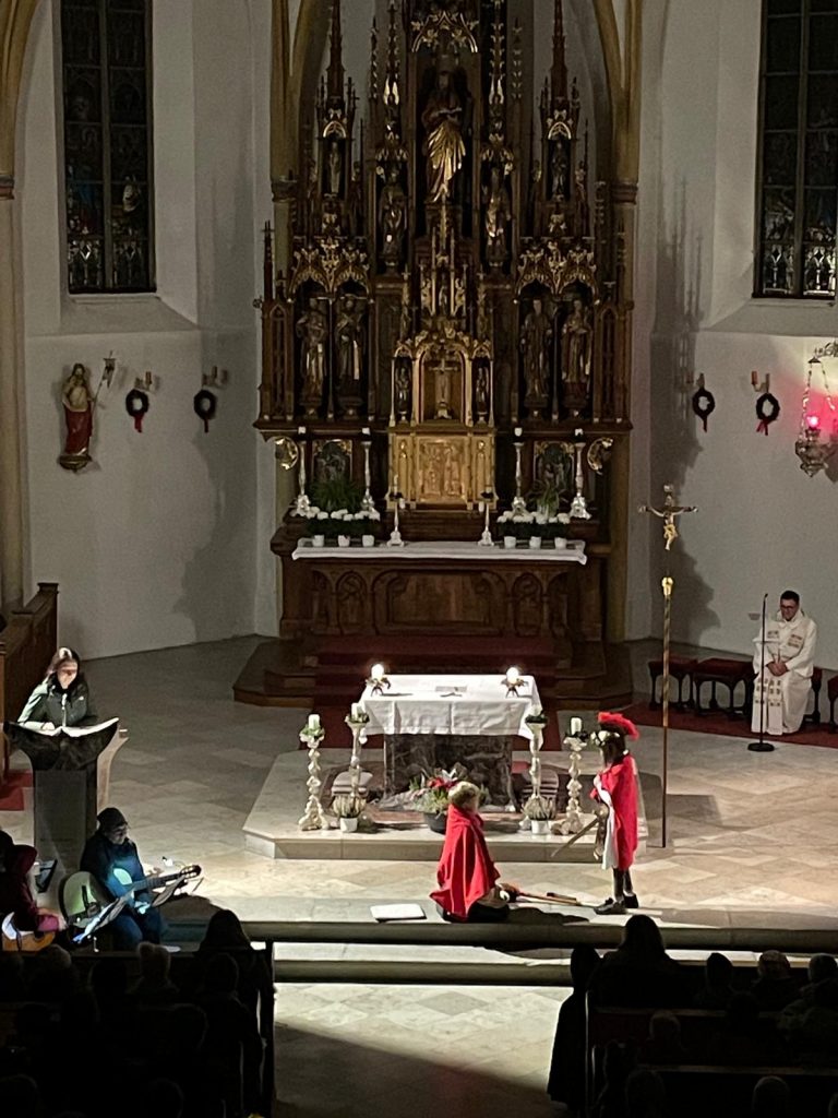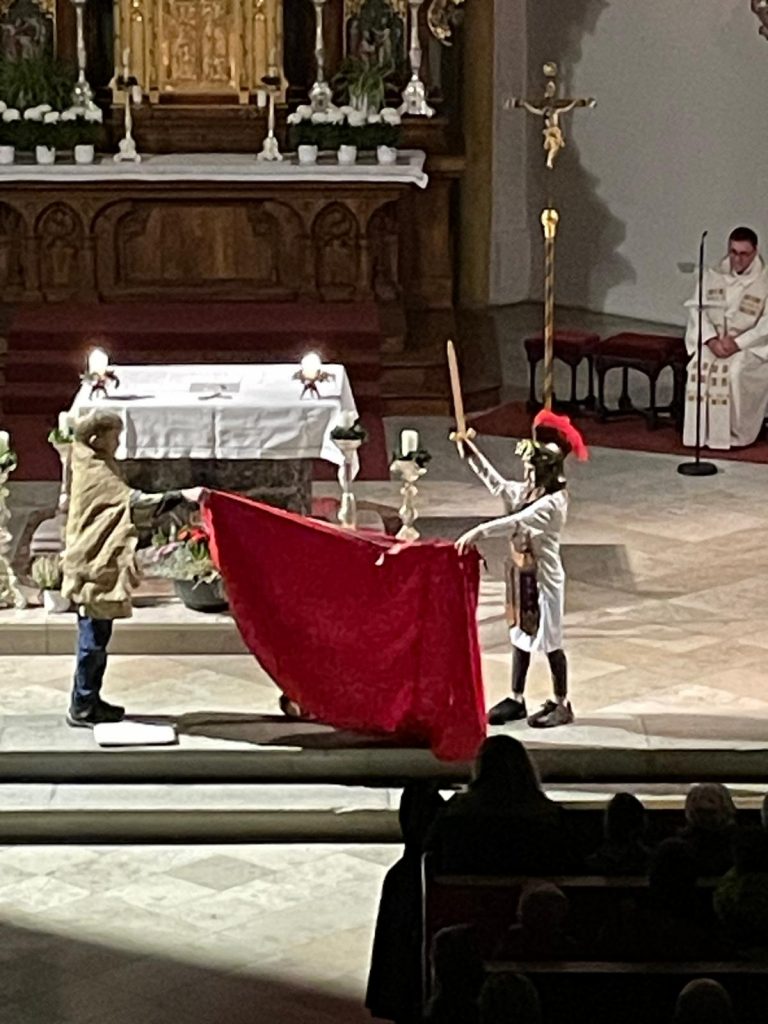 Auch dieses Jahr beteiligte sich unsere dritte Klasse wieder mit einem Martinsspiel an der Martinsfeier des Kindergartens St. Anna.